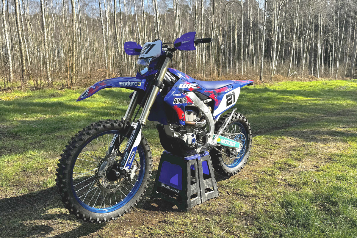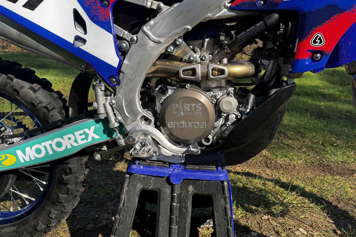 A short list of parts have literally been waiting for their moment to shine and already are on the WR. They are: Apico hand levers, Astra handlebars, Parts by Sweden clutch cover with our logo on, an Acerbis chain guide/rear sprocket protector, plus an old set of tyres while we bed the bike in.