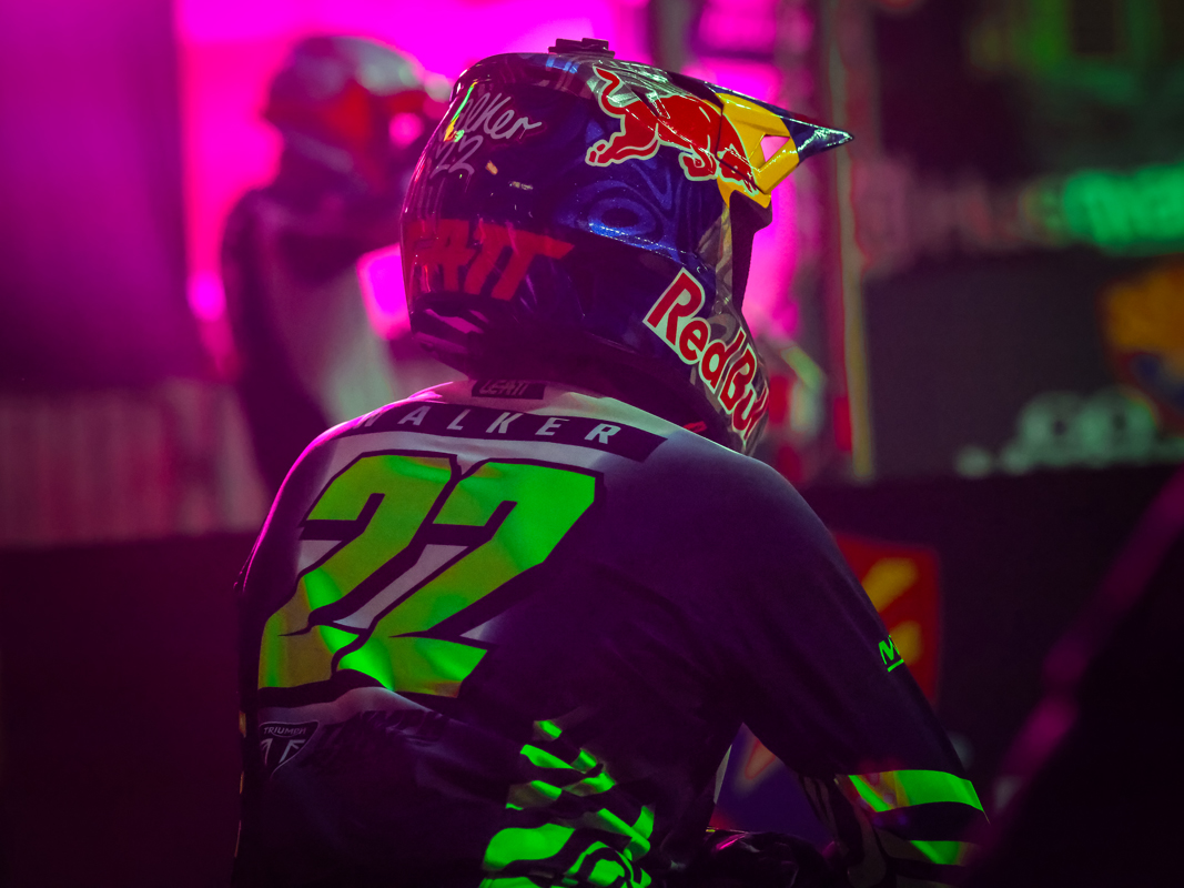 Stepping up to the big 450 Triumph after a season on the 250 in EX and SuperEnduro, former champion Walker looks faster and hungrier for the win than ever. The trouble is that guy on the KTM is in the way. But the ball is rolling on the 450 which Jonny tells us is helping him be faster on track, a fact backed-up by a strong of Superpole fastest times.