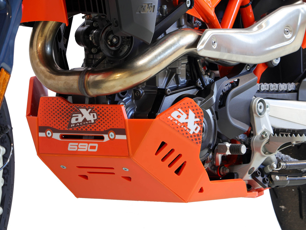 AXP Racing adds a new full-coverage HDPE skid plate to its range for KTM 690 and Husqvarna 701 models, aimed at riders using these big singles properly off-road.