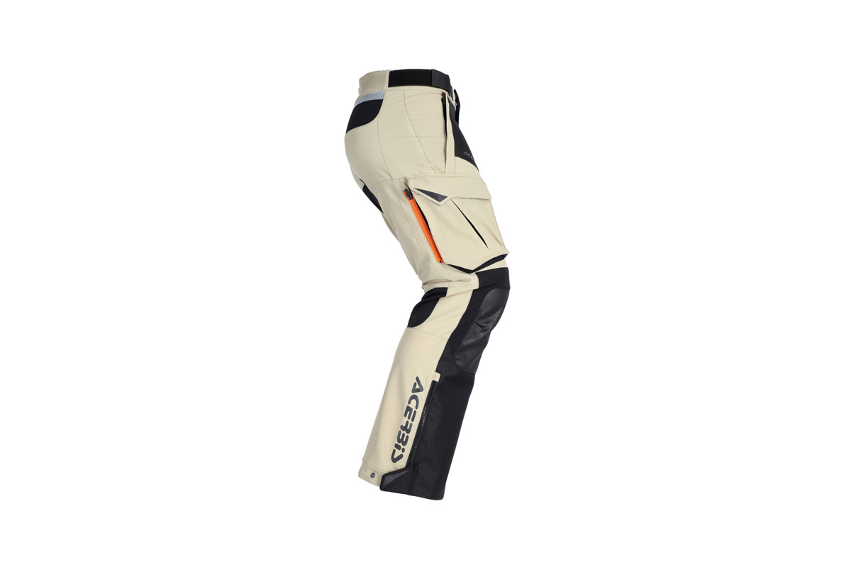The matching Rally Pro pants are equally rugged, with reinforced leather panels for protection, adjustable vents on the upper legs, and cargo pockets for practicality. Waist adjustments with webbing and Velcro fine-tune the fit. Sizes 30–40, priced at €169.95.