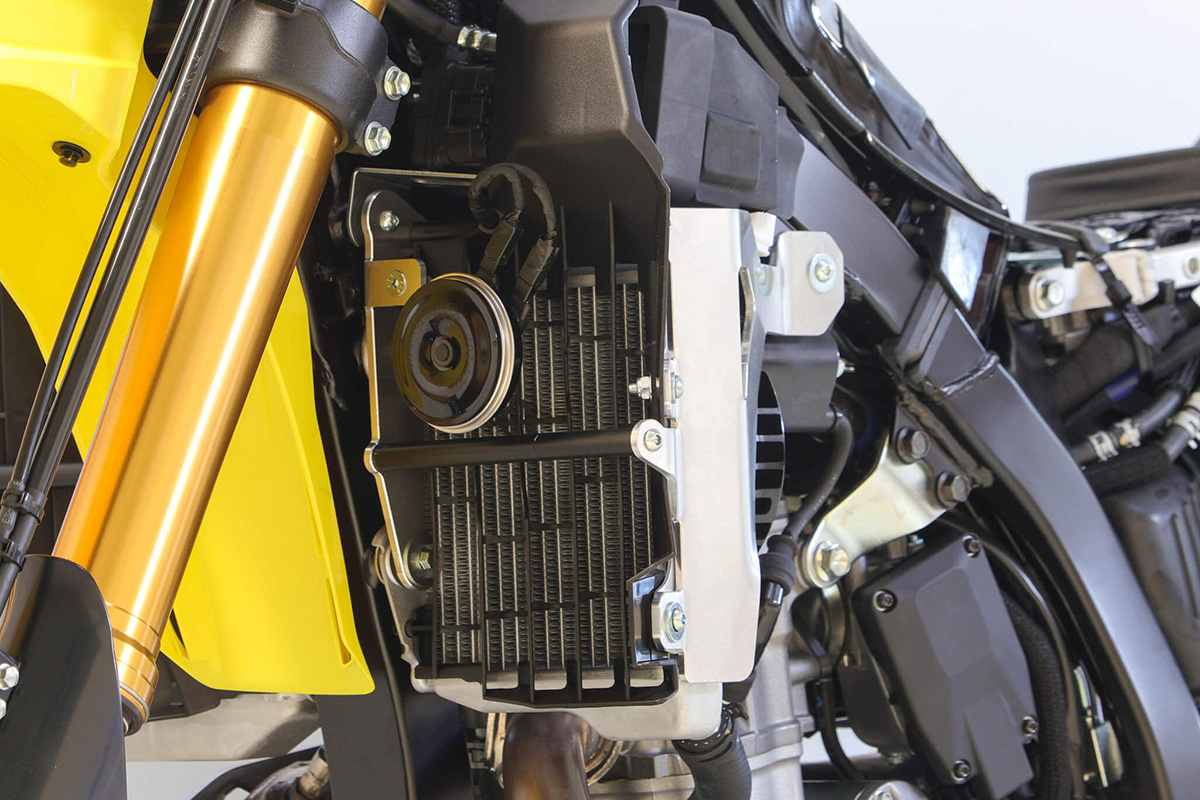 The standard DR-Z4S comes with a sump guard but it is minimal and does not protect engine cases and the rear suspension linkage guard. If you’re more inclined to the dirt and off-road, then AXP Racing’s new skid plate has to be on your shopping list to protect the vulnerable underside of your engine and chassis.
