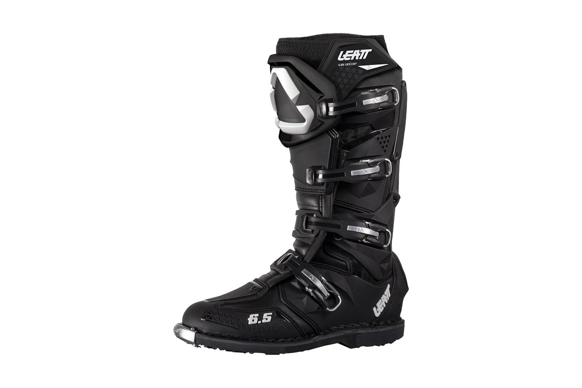 Leatt’s new, top-of-the-range Moto 6.5 boots are aimed at riders who “train, race and spend many hours on the bike.” Key features include the SlideLock closure system for a secure fit, ankle protection, and a focus on durability with a replaceable Goodyear sole and the LongLife Ride Kit (buckles, straps, toe caps and soles).