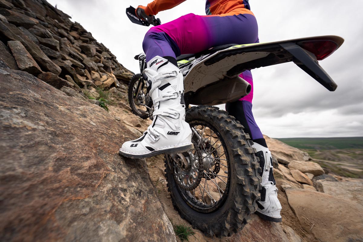 The headline for enduro riders will naturally be the stitched sole – something new for Leatt – with a steel toe cap and that all-important ‘edge’ to which the moulded sole boots don’t have.