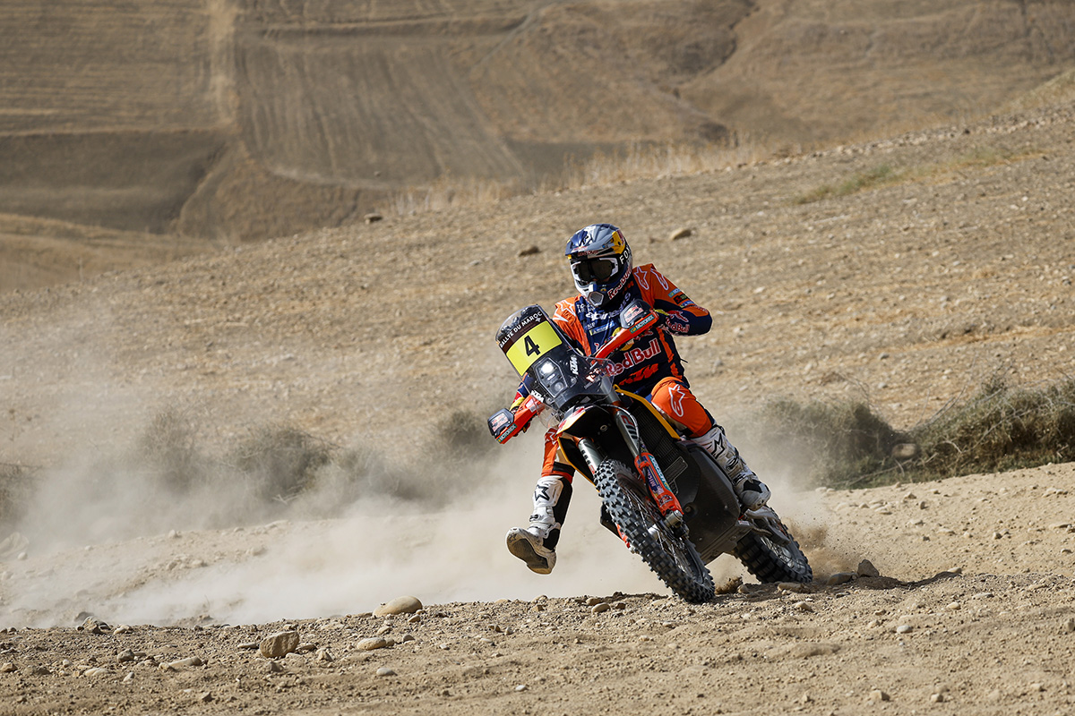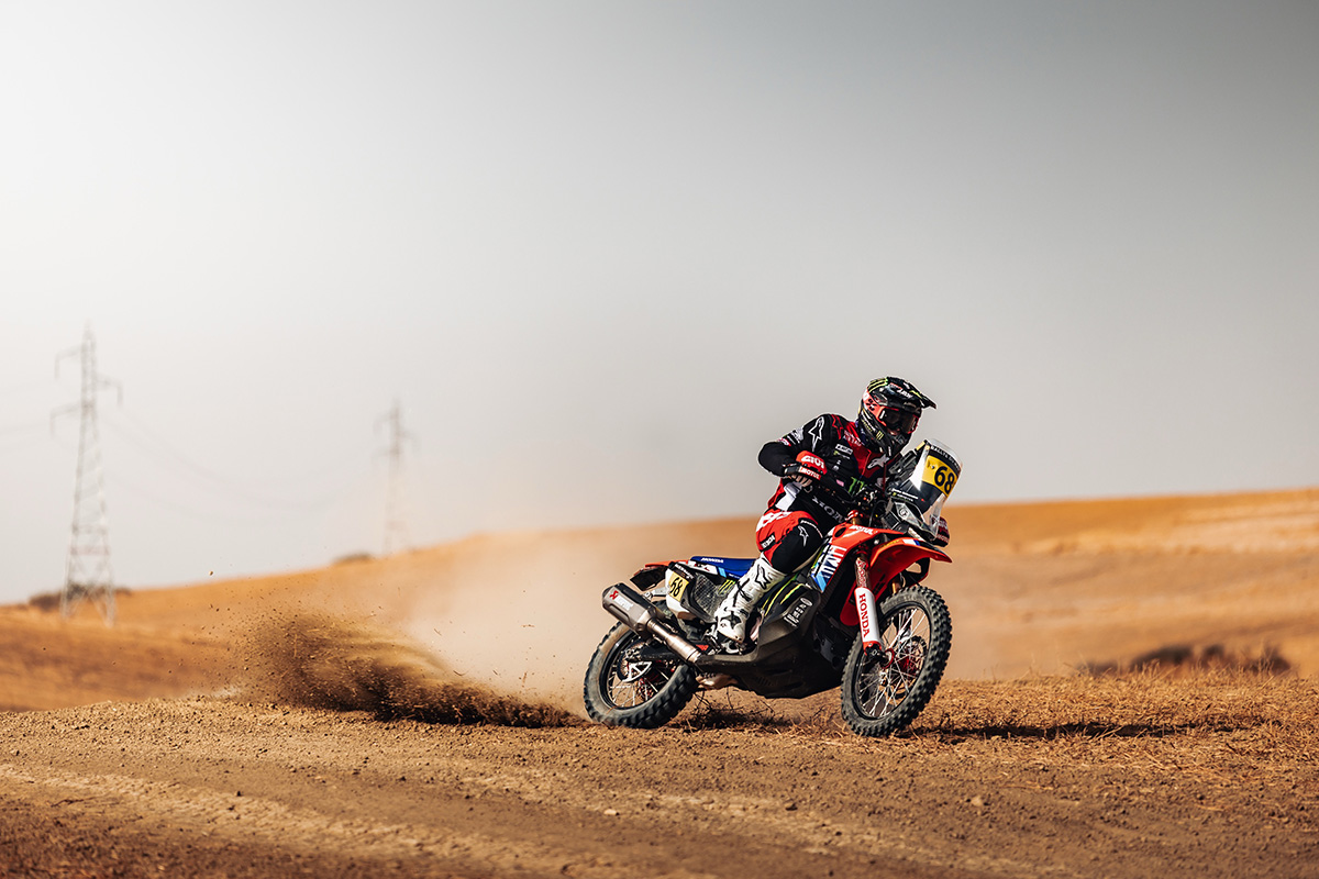 The factory Honda rider clocked 12'48” and finished ahead of the prologue specialist, his teammate Tosha Schareina by just +1”. The two factory KTM riders, Daniel Sanders (+5”) and Luciano Benavides (+10”), finished narrowly behind the two Hondas on this opening test which gives all-important start position choices for the stage ahead.
