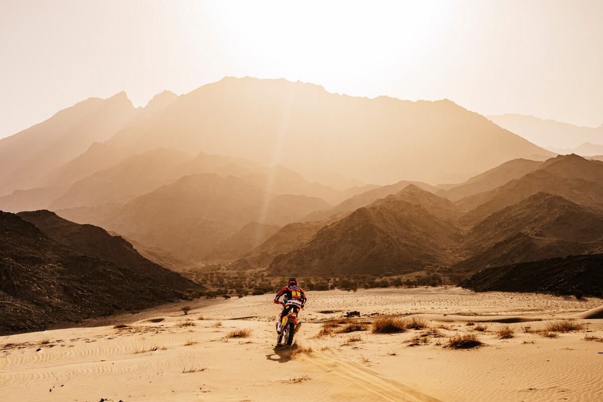 The two riders in it to win it started fourth and sixth today, meaning Luciano Benavides and Ricky Brabec both had lines in front to use as guides, hares to chase across the sand.