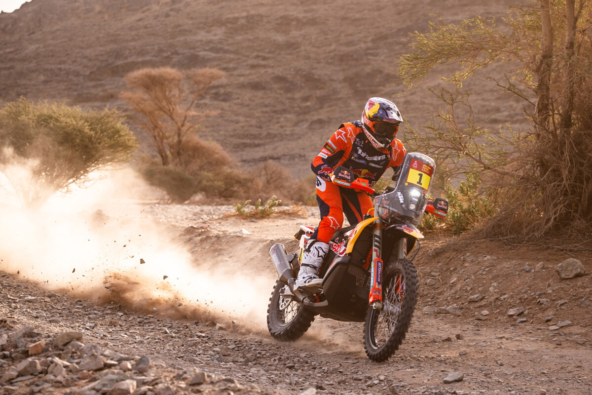 2026 Dakar Rally stage eight results where an impressive performance from Luciano Benavides sees the Red Bull KTM rider take the race lead with start to finish win ahead of Daniel Sanders and Monster Energy Honda’s Ricky Brabec.