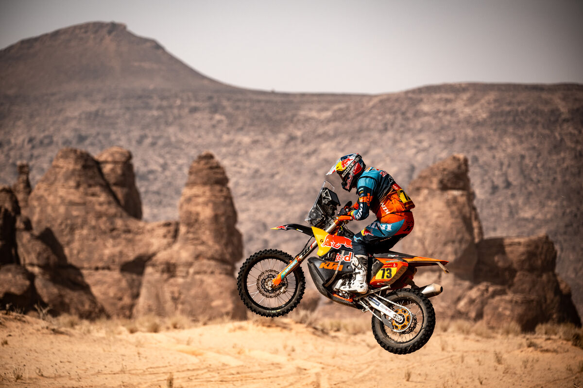 “Fue una mañana complicada, con más rocas planas y una navegación difícil, pero ojalá también pillara a otros. La gente tuvo que cuidar el material y los neumáticos, pero los míos acabaron perfectamente bien durante los dos días. Veremos dónde estamos mañana; he oído que hay algunas dunas, así que ir un poco más atrás no es terrible”, dijo el estadounidense con una sonrisa irónica.