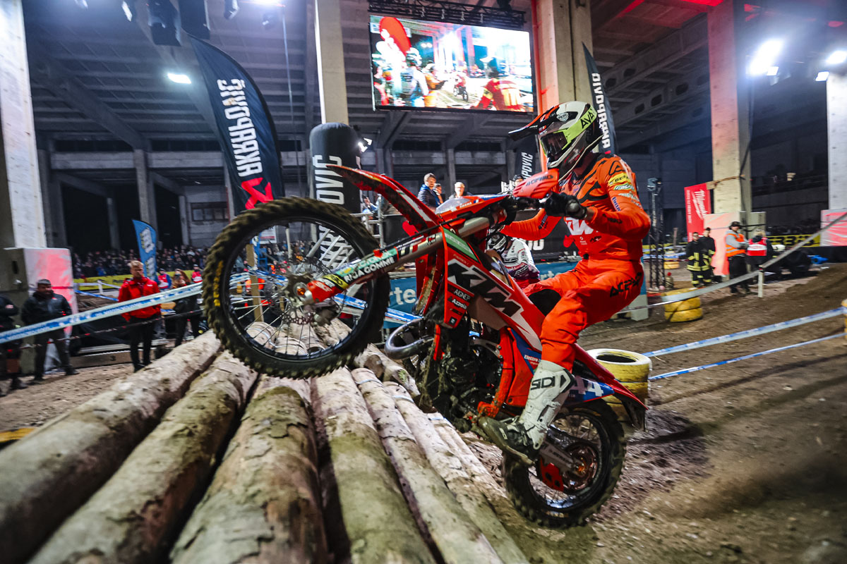 Pasó bastante tiempo antes de que viéramos a uno de los pocos humanos en el planeta capaces de vencer a Billy Bolt en una carrera de SuperEnduro: Dominik Olszowy, quien fue más rápido con un 1:35.9.