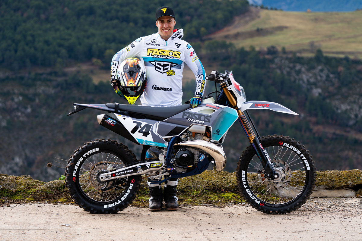 Enduro21 would be remiss not to mention the elephant in the room which everyone is talking about. The CFMoto logos on his bike and clothing are part of a future development project for Mario who, as we can see, is riding Husqvarna TE300 machinery. Mario told us news on this is still in his pocket for now.